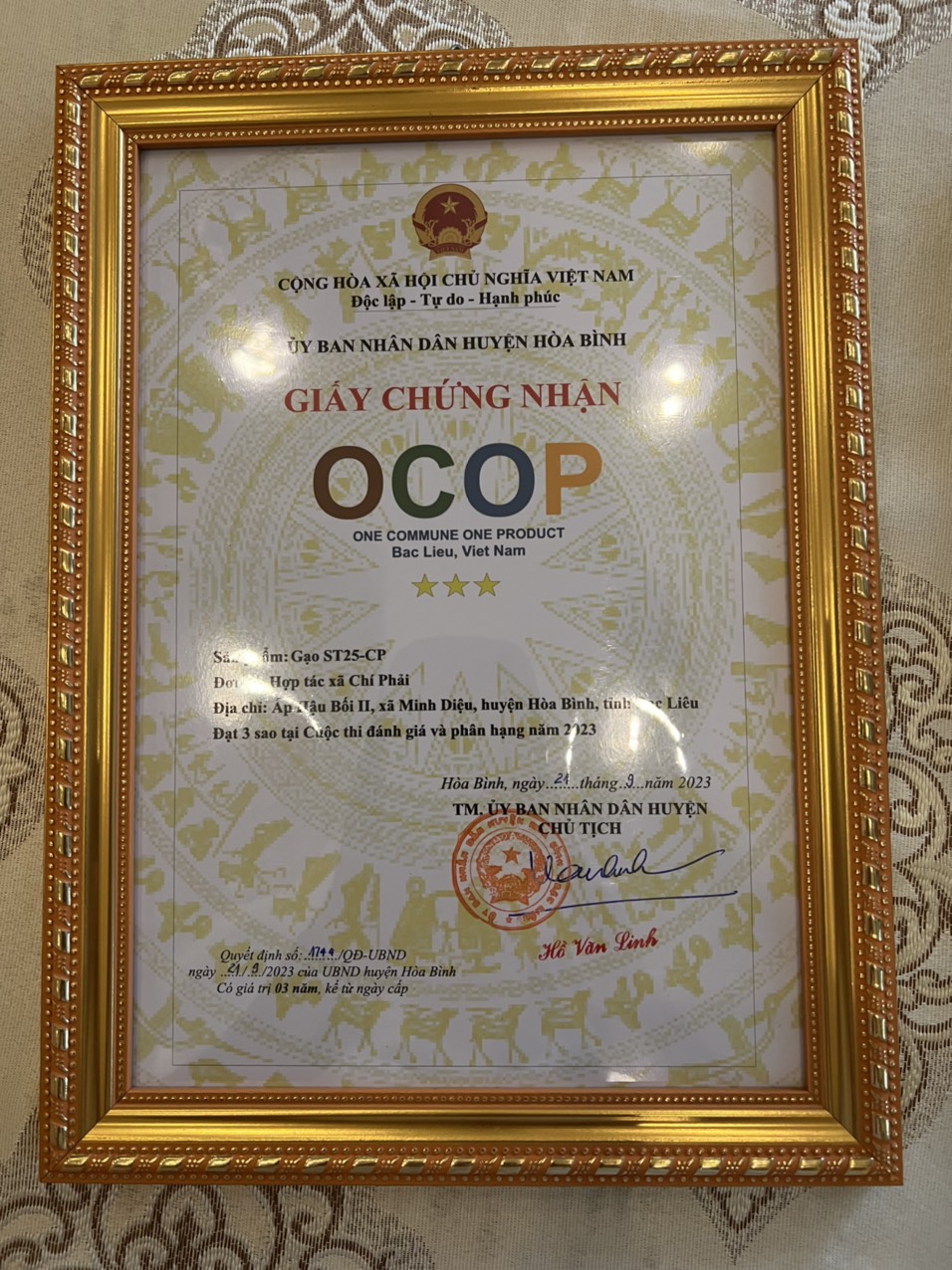 gốc nguyên liệu chính: huyện Hòa Bình, tỉnh Bạc Liêu