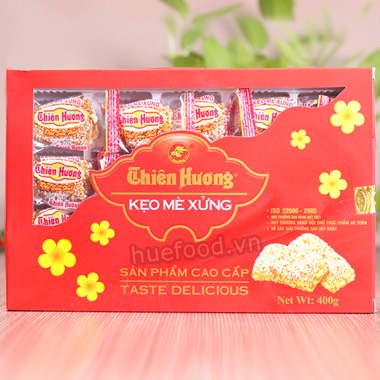 Đặc sản Mè xửng Huế được làm từ nguyên liệu chính là mẻ hay còn gọi là vừng, sau đó hoán đường cô đọc lại thành chất dẻo. Ngoài vừng thì bánh đa, mạch nha hay đậu phộng cũng là 1 trong những thành phần không thể thiếu của mè vừng. Với vị ngọt và dẻo dai của đường kết hợp với đậu phộng, mùi thơm của vừng khiến người ăn ăn vào nhớ mãi.